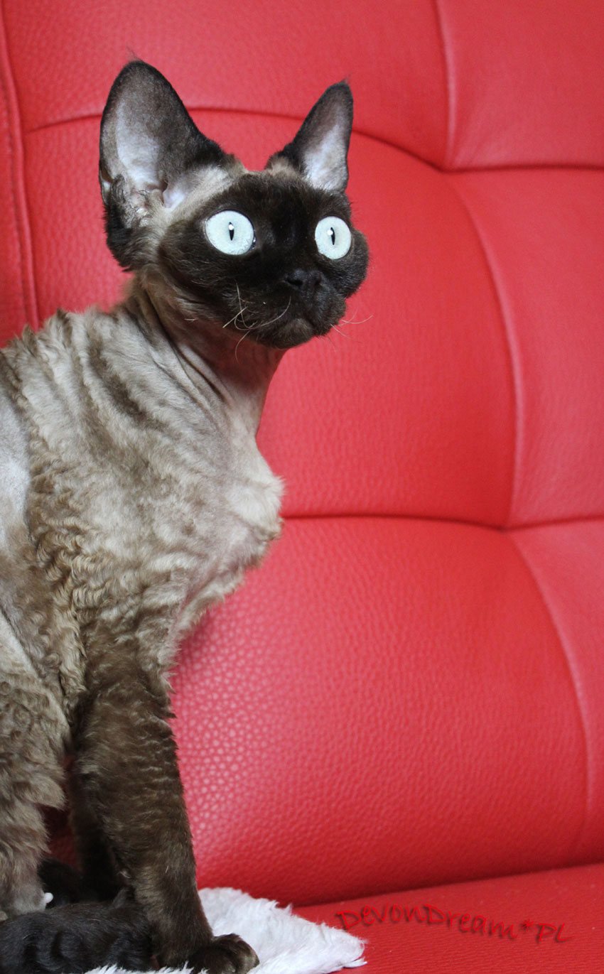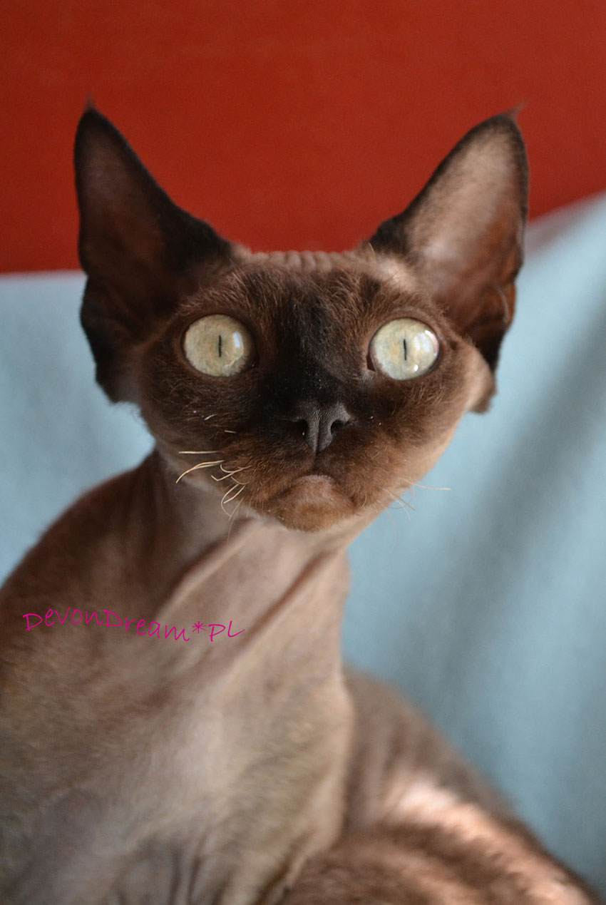 Śliczna kotka o wesołym i łagodnym charakterze, bardzo ciekawska, wszędzie musi zajrzeć i wszystko powąchać.